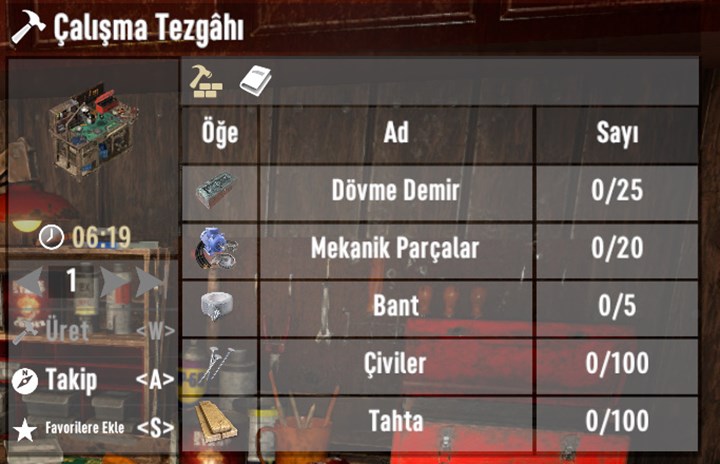 Çalışma tezgahı yapabilmek için Çalışma İstasyonları becerisini 10. seviyeye kadar geliştirmelisiniz. Bknz: Çalışma İstasyonları Becerisi Nasıl Geliştirilir?