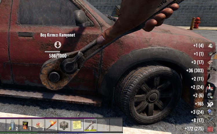Motor ve akü İngiliz anahtarı, mandal, şarjlı matkap aracılığı ile etraftaki terkedilmiş arabaları hurdaya ayırarak elde edilebilir. Ayrıca Kısa demir boru, mekanik parçalar, far, radyatör, elektrikli alet parçaları, yağ gibi eşyaları da bu yöntemle elde edebilirsiniz.