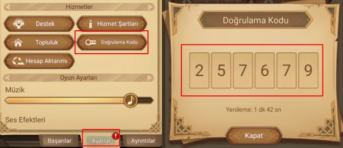 Ardından alt kısımdaki Ayarlar sekmesine tıklayın, Doğrulama Kodu butonuna tıklayarak gerekli Verification code’a erişebilirsiniz. Yenileme süresi sonunda bu kod değişecektir. Bu süre içerisinde giriş yapmanız gerekmektedir.