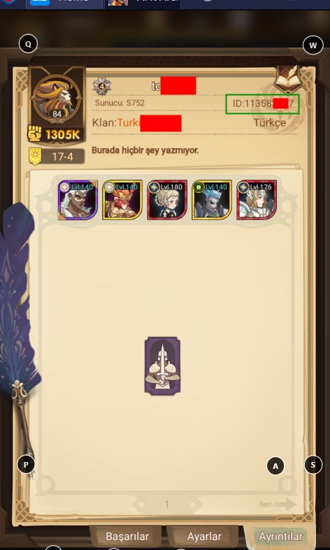 Böyle bir ekran karşılayacak sizleri. Burada yapmamız gereken ise oyunu ister telefondan isterseniz PC(Bluestack ile) açarak UID numarasına erişmek.