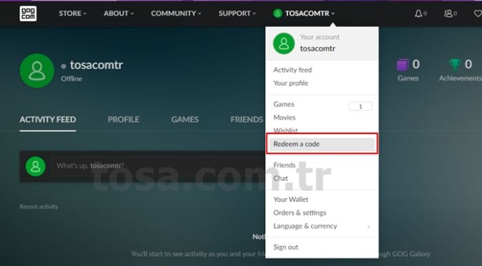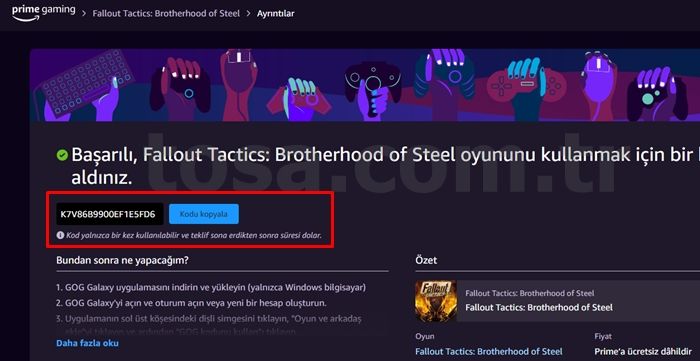 Amazon Prime Gaming üzerinden ücretsiz oyunu talep ettiğinizde size bir kupon kodu verecektir. GOG sitesine gidip bir hesap oluşturmalısınız.