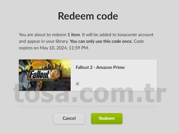 Kupon kodunu girdikten sonra aşağıdaki resimdeki gibi hangi oyuna ait olduğunu göreceksiniz. Redeem butonuna tıklayarak işlemi bitirebilirsiniz.