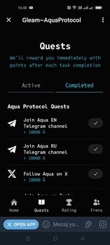 Gleam tarafından geliştirilen Aqua Protocol, her 8 saatte bir etkinleştirip toplayabileceğiniz Aqua Puan kazanmanızı sağlayan Telegram oyun botudur. Bu bot yine diğer airdrop projelerine benzer şekilde görev sistemi, arkadaş davet sistemi içermektedir.