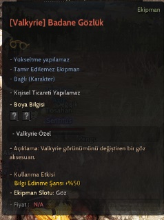Resimde gördüğünüz üzere gözlük %50’lik bilgi edinme şansınızı arttıracaktır. Ayrıca küpe’de %5’lik bir arttırma sağlayacaktır.