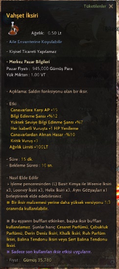 Vahşet iksiri biraz pahalı olsada birçok özelliği kullanmanızı sağlar. Bizim konumuza uygun özelliğinden bahsedecek olursak Bilgi edinme seviyenizi %12 olarak 15 dakika boyunca arttıracaktır.