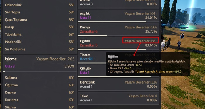 Eğitim becerinizi her 1 seviye yükselttiğinizde yaşam beceri puanı elde edersiniz. Örneğin Zanaatkar 1 seviye eğitim becerisine sahipseniz Zanaatkar 2 olduğunuzda yaşam beceri puanınız(Mastery Points) 5 puan artacaktırç