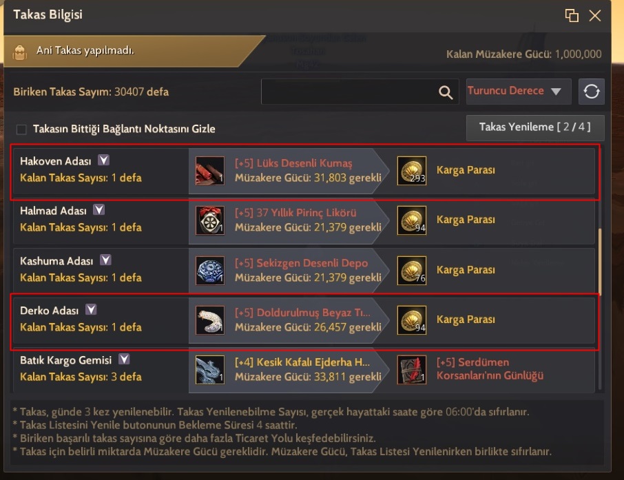 Listeyi yenilediğinizde Hakoven en yüksek Karga parası veren yerdir genel olarak. Bazen düşükte verebilir ama Okyanus takas noktaları da dahil olmak üzere 500 Karga parası veren tek yer Hakovendir.