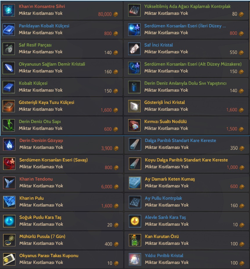 |  | Manos Taşı | 2 Okyanus Takas Kuponu | 20 Okyanus Parası |