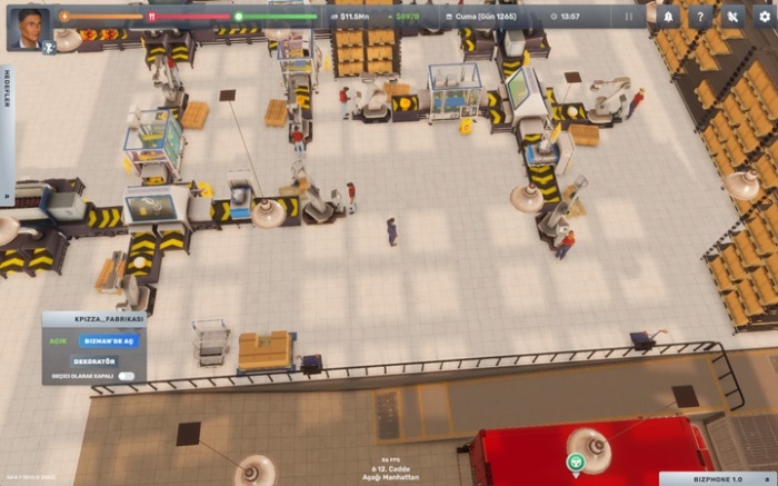 Bir pizza fabrikası kurmak için oyun ekranında F1’e basın, ve Fabrika tarifleri başlığı altından Pizza Tarifini bulun. Orada fabrikada üretebileceğiniz bütün mamüllerin tariflerini bulabilirsiniz.