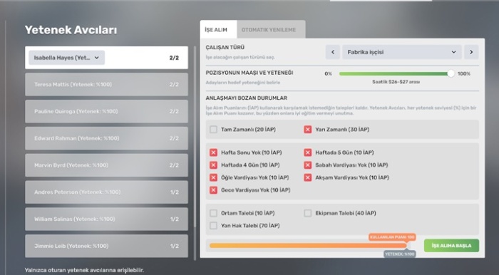 Fabrikanızda istihdam sağlıyacağınız işçiler teslimat şoförleri ve fabrika işçileridir. Fabrika işçileri makinalarda çalışarak hammadde girişi sağlayıp çıktı ünitesinden mamül ürünü rafa yerleştirir. Teslimat şoförleri ise lojistik yöneticisi atayarak üretilen ürünün dağıtımıyla veya bir depoya sevkiyatıyla ilgilenir.