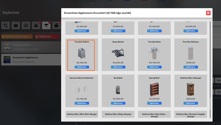 Big Ambition son güncellemesinde artık mağaza ve ofislerinize yeterli miktarda tuvalet kurmanız gerekir.Tuvalet için gerekli eşyaları Essentials Appliances mağazasından satın alabilirsiniz.