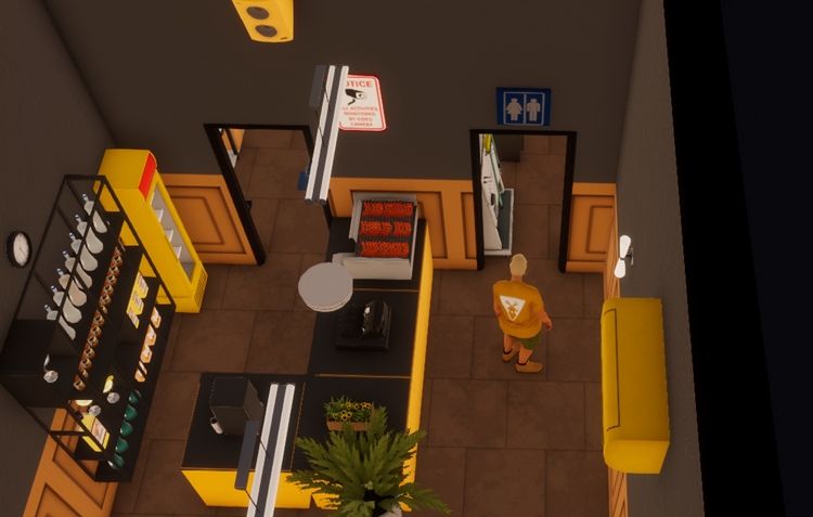 Oyundaki bütün binalar 3 bölümden oluşur. Büyük bölümde müşterilere hizmet ve mal satışı gerçekleştirebilirsiniz. Nispeten ufak olan alanı mağaza deposu ve temizlik ekipmanları, çalışanlar için eşyalar ile donatabilirsiniz. En küçük alanı tuvalet olarak kullanabilirsiniz.