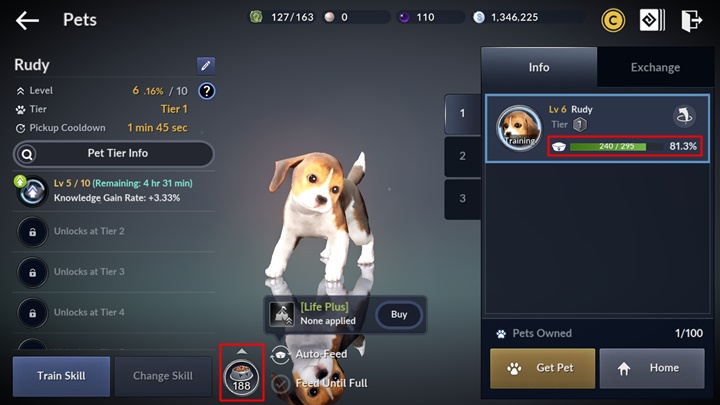 Petiniz belli bir süre sonra acıkacak ve bu süre boyunca toplama veya becerileri size yansımayacaktır. Bu nedenle acıkan peti doyurmanız için yem satın almalısınız.