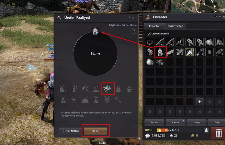 Nehir Suyu şişelerini “L” ile üretim penceresini açarak, Süzme kullanıp Saf Su Elde ediyoruz.