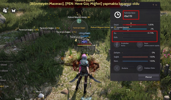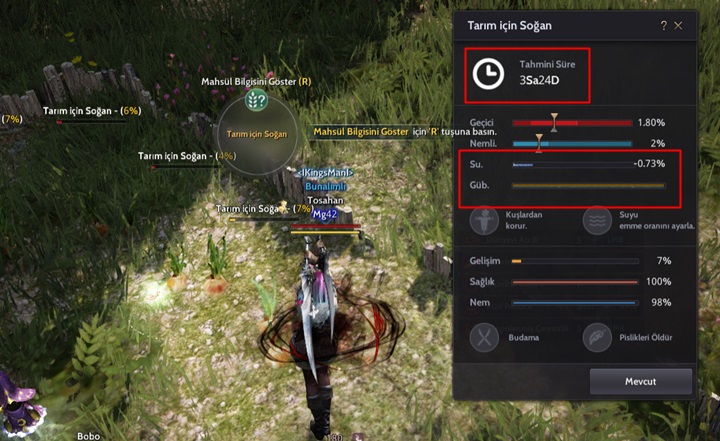 Ürünleriniz büyürken bazı durumlara maruz kalabilir. Normal ürünler sarı renkte ilerleme kaydederken, sorunlu ürünlerin ilerleme kısmı kırmızıdır. Bu şekilde olan ürünlere gelerek Budama veya pislikleri öldürme işlemi yapabilirsiniz. “R” tuşuna basarak işlemi yapıp, hem rastgele ürünler elde edebilir, hemde çiftçilik leveli kasabilirsiniz.