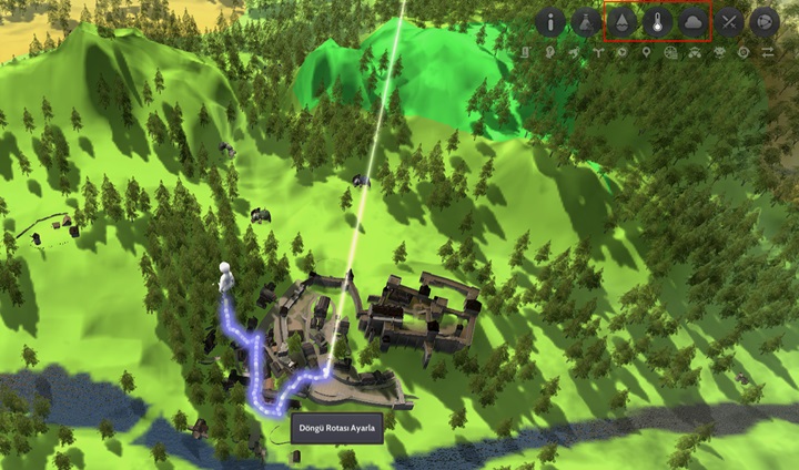 Haritayı Açıp, yer altı suyunu ve nemi kontrol edip, kuracağımız yeri bulmamız gerekiyor. “M” tuşu ile haritayı açıp, yukarıdaki resimde belirtilen ikonlara tıklayarak size en uygun yeri bulabilirsiniz.