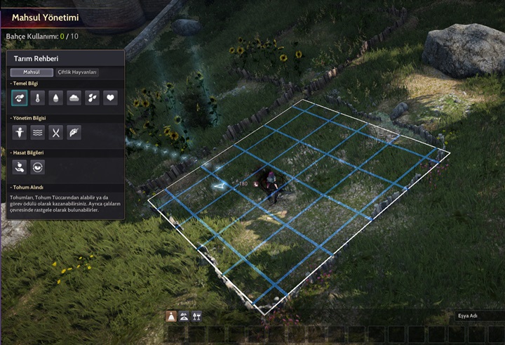 Çiti yerleştirdikten sonra orta kısma giderek “R” tuşuna basıp Yerleştirme moduna geçebilirsiniz. Burada envanterinizde bulunan tohumları tek tek ekebilirsiniz.