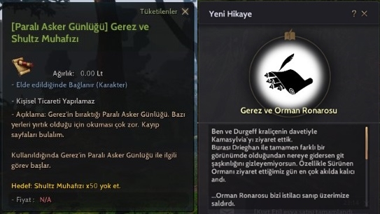 Gerez ile konuşarak görevi alabilirsiniz. Fakat görevi tamamlamak için Gerez’in size verdiği ve envanterinizde bulunan Paralı Asker Günlüğü eşyasına tıklayarak toplamda 3 görev yapmanız gerekmekte.
