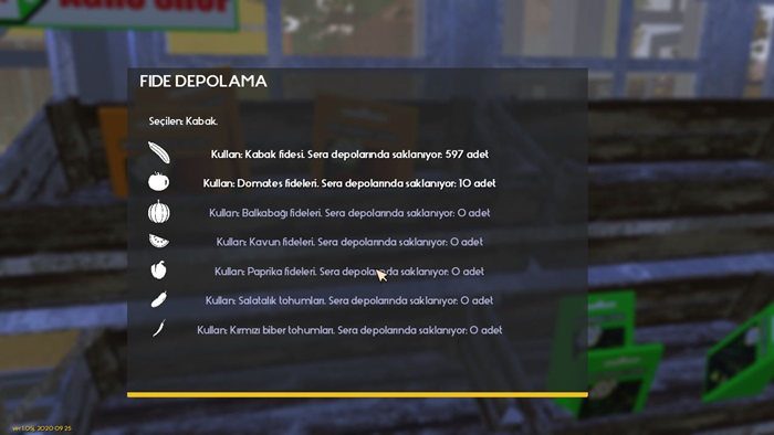 Tohumları satın aldıktan sonra seranın herhangi bir yerinde onarma problemi olmaması gerekiyor. O nedenle seranızı tamir etmeyi unutmayın. Aldığınız fideleri seranın içerisinde yer alan fide deposunda bulacaksınız.