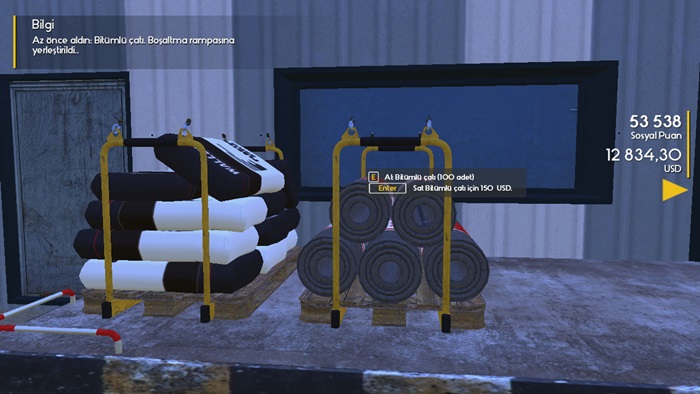 Satın aldıktan sonra almış olduğunuz malzemeler Bina deposu çıkış noktasında sizi bekliyor olacak. Buraya yaklaşarak E tuşu ile kullanmak üzere üzerinize almalısınız.