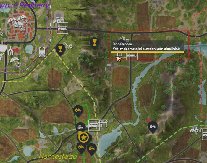 Yukarıdaki harita görselinde çiftliğinizin konumuna en yakın bina deposu noktası belirtilmiştir. Peki bu noktadan neler satın alınabilir?