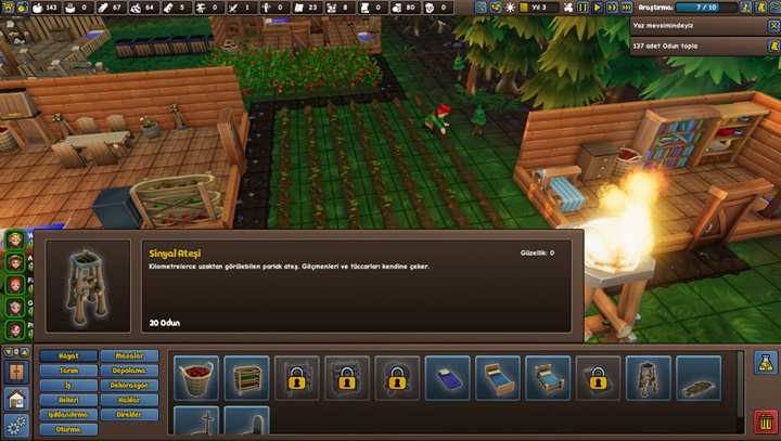 Hayat > Sinyal Ateşi bölümünden ilgili binayı 20 odun karşılığında sahile yerleştirin.