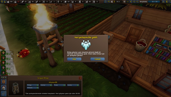 Adada yerleşimci sayınızı arttırmak için mevcut yerleşimcilerinizin isteklerini karşılamalısınız. Ayrıca yeni yerleşimcileri karşılamak için Sinyal ateşi binasını kurmanız gerekir.