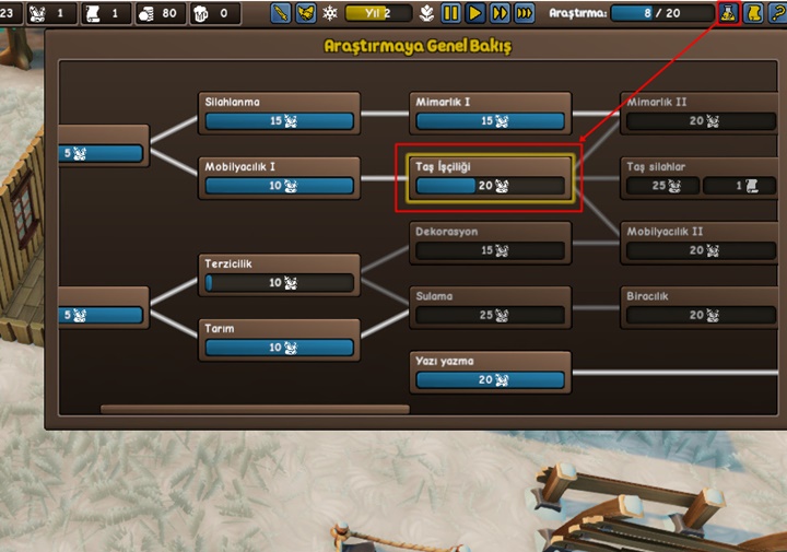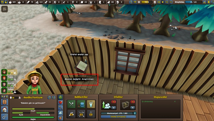 Daha sonra araştırma standına tıklayarak yerleşimciyi araştırmacı olarak atayabilirsiniz.