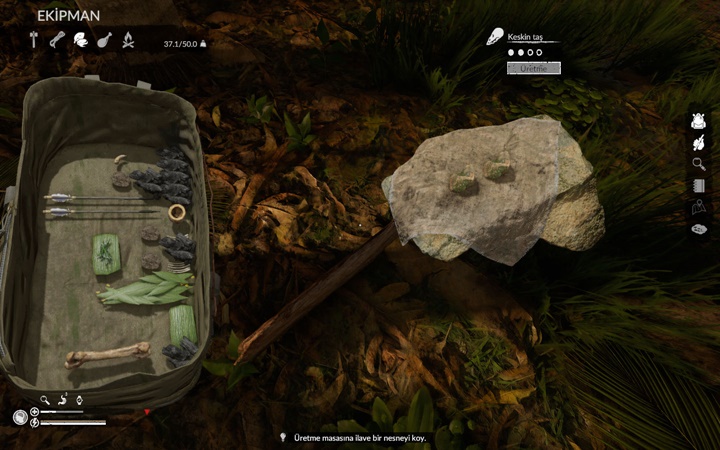 2 adet taşı tezgaha koyarak keskin taş elde edebilirsiniz. Bu eşya ile avladığınız avların derisini ayırma kısmını halledebilirsiniz.