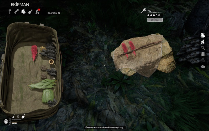 Yay elde etmek için uzun sopa ve halat gerekli. Uzun sopa çantaya alınamadığı için uzun sopanın yakınında çantanızı açıp üretme bölümünü açın ardından uzun sopayı tezgaha sürükleyip birde halat sürükleyip üretin.