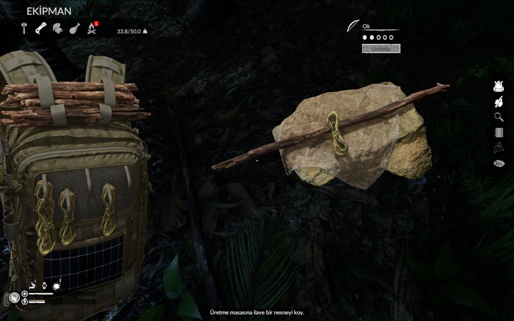 Ok üretmek için 2 tüy birde ince sopaya ihtiyacınız var. Tüyler için çevrede ölmüş papağanları araştırabilirsiniz. İnce sopa içinse normal sopayı işleyebilir veya bir ağaç kesebilirsiniz.
