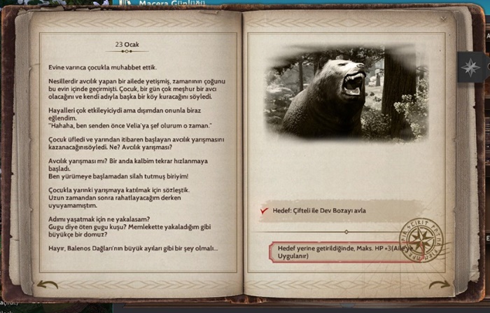 Av tüfeği ile bu bozayıyı öldürdükten sonra 2.sayfa tamamlanacaktır. Ödülü aldıktan sonra bir sonraki sayfaya geçebilirsiniz.