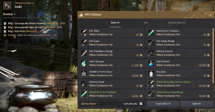 Eğer elinizde bir kasap bıcağı yoksa Behr’de bulunan Malzeme satıcısı Indri isimli NPC’den geliştirilmiş Kasap Bıcağı veya Kör Kasap Bıçağı temin edebilirsiniz. Bu sayfada