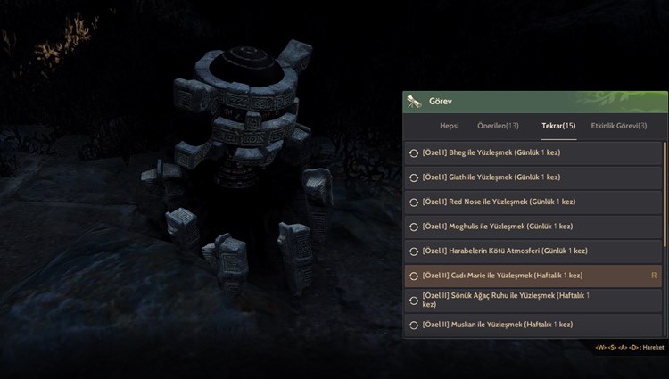 Bunun için Kara Ruhu çağırın, Görev bölümüne tıklayın açılan kısımda Tekrar görevlerini seçip Cadı Marie ile Yüzleşmek (Haftalık) görevini alarak korkunç cadı çağırma parşömenini alabilirsiniz.