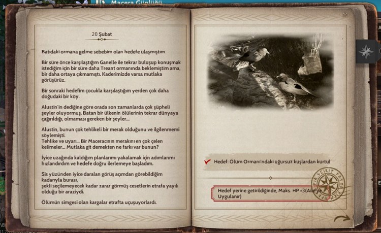 Cadı Tapınağı’nın girişindeki kargalardan bir tane öldürmeniz sayfa görevini tamamlamak için yeterlidir. Bu sayfayı tamamladığınızda ailenizdeki bütün karakterlere +3 HP özelliği ödül olarak eklenecektir.