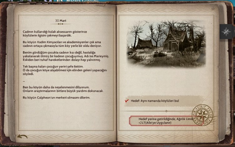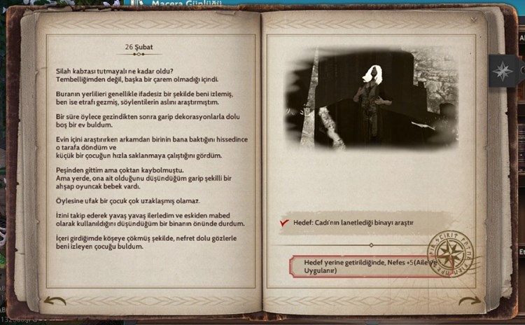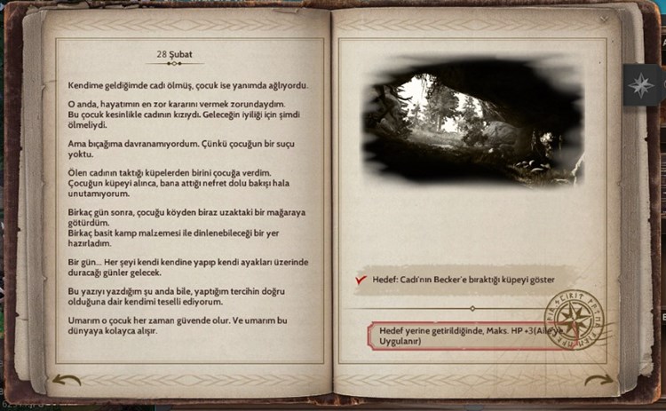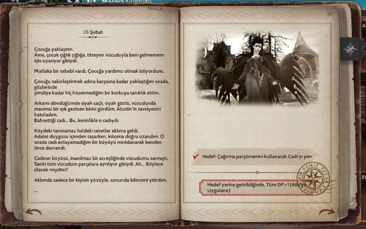 Envanterinizde bu parçömene tıklayarak sizi yönlendirdiği yerde Cadıyı keserek sayfayı tamamlayabilirsiniz. Bu sayfayı tamamladığınızda ailenizdeki bütün karakterlere +1 DP özelliği ödül olarak eklenecektir.