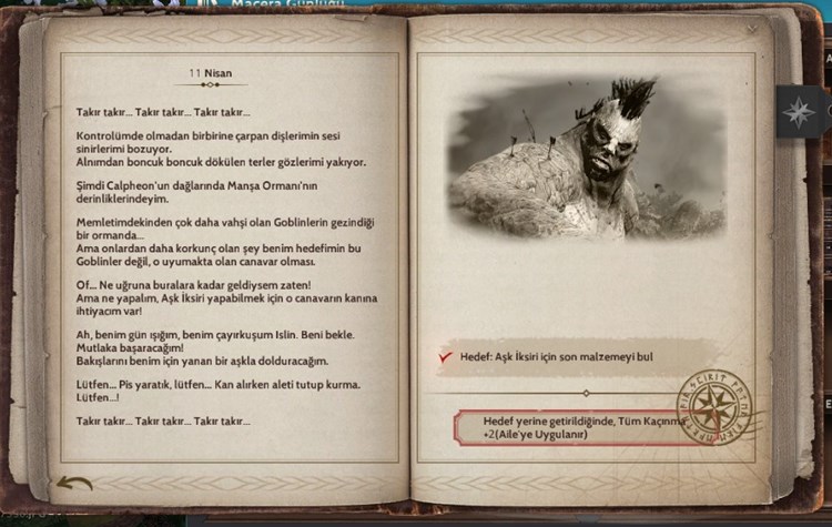 Ogre kanına ihtiyacınız var. Sıvı toplayıcı ekipmanıyla Manşa Ormanı’nda bulunan ogreyi öldürdükten sonra kanını topladığınızda görev tamamlanacak. Görevin ödülü +2 Tüm Kaçınma ailedeki bütün karakterlere uygulanır.