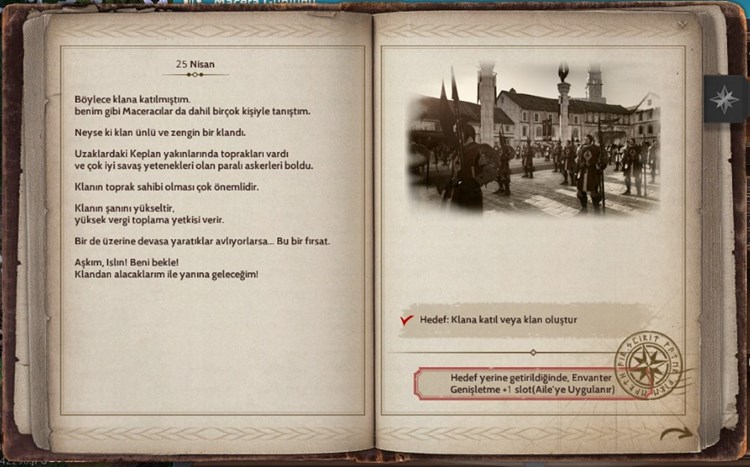 Eğer bir klana zaten katıldıysanız sayfa görevi tamamlanmış demektir. Yoksa herhangi bir klana katılmak için G tuşuna basın ve listeden herhangi bir klan seçip başvurun. Görevin ödülü 1 adet envanter slotu bütün karakterlerinize eklenir.