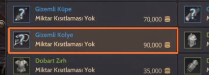 Valia için Tranan Underfoe, Calpheon için Grandus ve Heidel için Techthon’dan Gizemli Kolye paketini satın alabilirsiniz. Bu paketin içerisinden şans ederi Kalis Kolye düşmektedir. Minimum 2 adet kalis kolye olduktan sonra kara ruhu açıp PRI seviyesine yükseltmeniz gerekir. 10 FS yeterlidir.