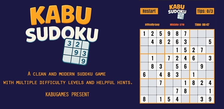 Geleneksel sudoku oyununa kabu imzası attık. Kabu Sudoku hoşunuza gidecek modern görünümü, rahatlatıcı müziği ile Google Play mağazasında yayında. İnternet olmadan da her zaman oynayabileceğiniz Kabu Sudoku, gözünüz için hem dark hemde klasik temaya sahip. Izgara sistemini ayarlardan değiştirebilirsiniz.