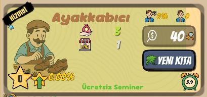 Çalışanı temsil eder), mantık olarak işletme açtığınızda zaten çalışanlarınızın olması gerekir. Aksi halde işletmenin kar elde etmesi mümkün değildir. Oyuna bu sistemi eklerken bu mantıkla ilerleyerek Eğitim ve eğitim %100 olduğunda bunun 1 kalifiyeli çalışana dönüşmesini istedik. Toplamda 100 adet kalifiyeli çalışana sahip olabilirsiniz her işletmede. Bir çalışan için 100 eğitim puanına ihtiyacınız olduğunu varsayarsak, 100×100 10.000 eğitim puanı toplamanız gerekecek. Eğitim ile alakalı eventlar size bu puanı kazandıracaktır. 10.000 olduktan sonra sadece para kazandırır.