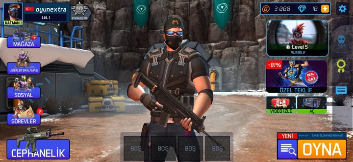 Yayımlandığı platformlardaki tam adı MaskGun Multiplayer FPS-Ücretsiz Nişan alma oyunu olarak geçen ama kullanıcılar arasında MaskGun olarak bilinen oyun hemen hemen her makalemde bahsettiğim Mobil oyunlar platformunun en fazla aktif oyuncusuna sahip olan FPS oyunları kategorisinde bulunmaktadır. Yayımlandığı market şeklindeki platformlarda on milyon indirme barajının aşmış olan bu oyun 5 yıldız üzeri puanlama sisteminden 4,2 gibi çok yüksek bir puan almıştır. Ücretsiz indirme ve olanağına sahip olan bu oyun çevrimiçi ve multiplayer oynanan savaş oyunudur. Aktif oynayıcı sayısı oldukça fazla olan bu oyunun yayımlandığı marketlerdeki kullanıcı yorumlarına bakıldığında olumluluk yani memnuniyet seviyesinin oldukça yüksek olduğu görülmektedir. 5 yıldız sistemi üzerinden 4,2 gibi yüksek puan almasının başlıca sebebi de kullanıcılar tarafındaki memnuniyet seviyesinin yüksek olmasıdır. FPS oyunları kategorisi kısa bir süre önce ülkemize oranla dünya çapında çok daha yaygında, ama son zamanlarda ülkemizde de çok fazla tercih edilen bir sektör haline geldi bu kadar fazla oyuncuyu barındırdığımız için yabancı kökenli olsa bile çoğu FPS oyununda Türkçe dil seçeneği mevcuttur.
