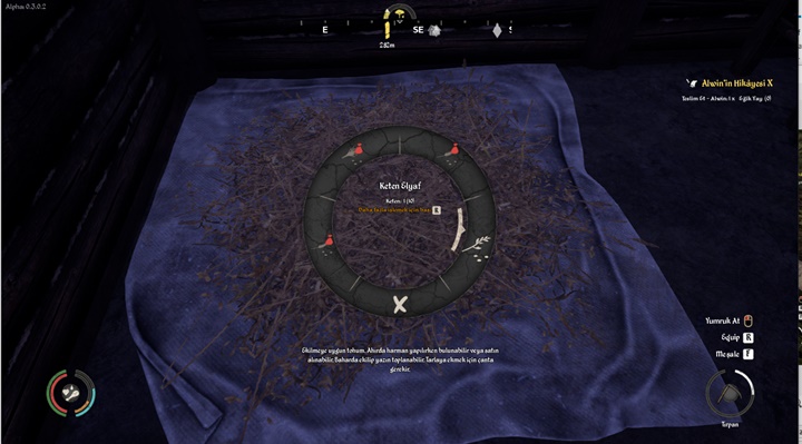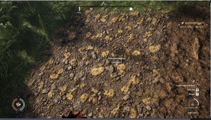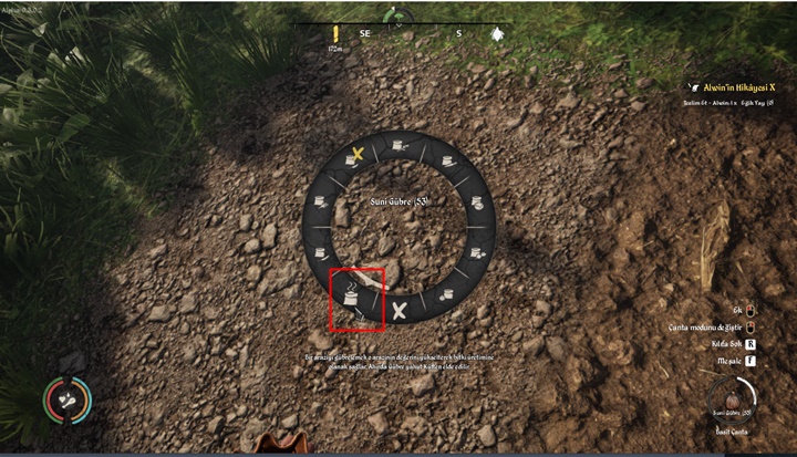 Gübreyi elde ettiğiniz varsayarak gübre atmak ve tohum serpmek için gerekli olan çantayı da elde etmeniz gerekir. Q tuşuna basarak basit araç gereç üretimi bölümünde 3 Deri karşılığında bir basit çanta elde edebilirsiniz. Çantayı kuşandıktan sonra üzerinize aldığınız gübreyi çantaya geçirmek için SAĞ TIK yaparak çanta menüsünü açın ve Gübreye tıklayın.