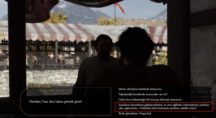 Arenaya girdikten sonra Turnuva Ustası ile konuşun. Eğer yukarıdaki resimde gördüğünüz seçenek çıkmıyorsa önce bir tanışmanız gerekebilir. Bu durumda dğer seçeneklerle Turnuva ustasıyla görüşün. Arenalar sadece gündüzleri açık olduğu için gündüz ziyaret etmeyi unutmayın.