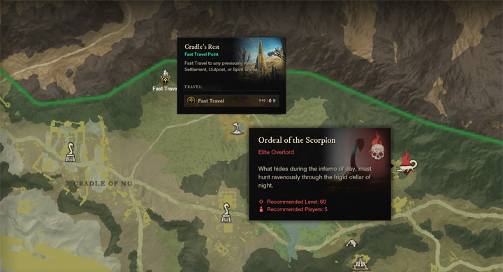 Brimstone Sands bölgesinin en üst kısmında yer alan fast travel noktası Cradle’s Rest’e ışınlanarak Ordeal of the Scorpion bölgesine gidebilirsiniz. Bölgeye giriş için kapıdan geçmeniz gerekmektedir. Kapıyı açabilmek için ise 9 numaralı glif D’UN-YICH okumuş olmalısınız.