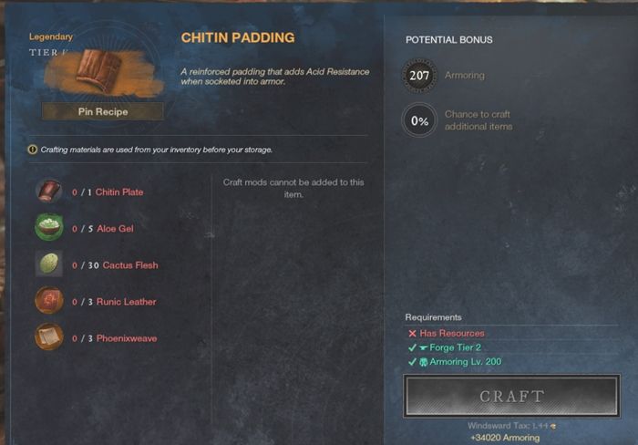 Chitin Padding Forge tezgahında, 200 seviye Armoring becerisine sahipseniz üretebilirsiniz.
