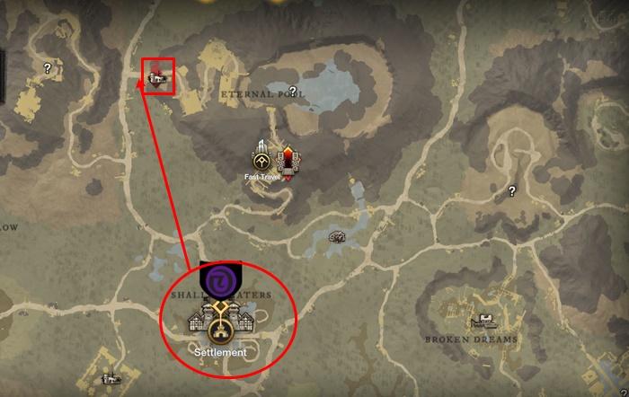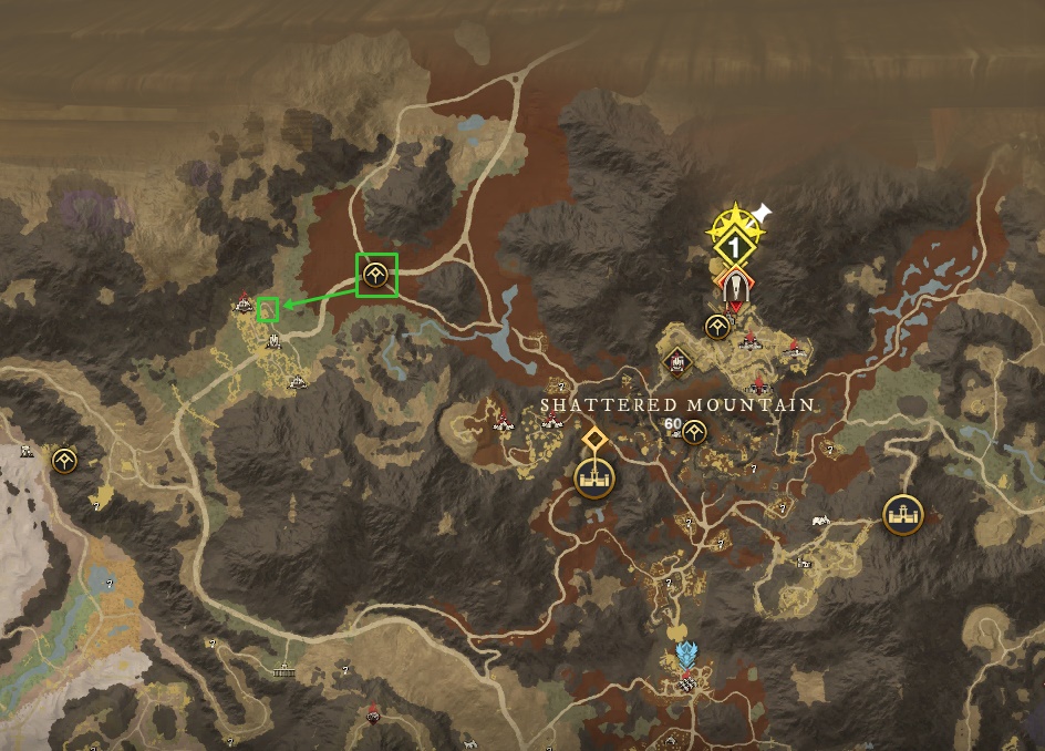 Shattered Mountain bölgesinde bulunan Crossroads Shrine isimli ışınlanma noktasına ışınlanarak aşağıdaki resimde gösterildiği yere gidiniz.