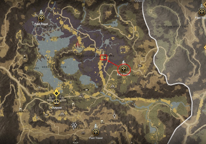 Shattered Mountain bölgesinde sol kısımda bulunan Mountainhome isimli outpostun hemen üzerindedir.
