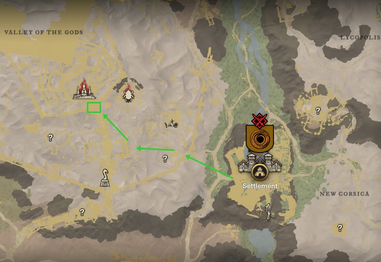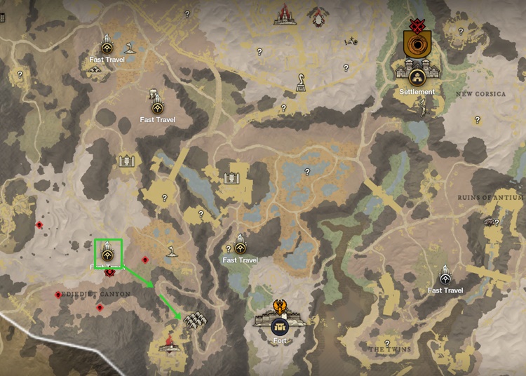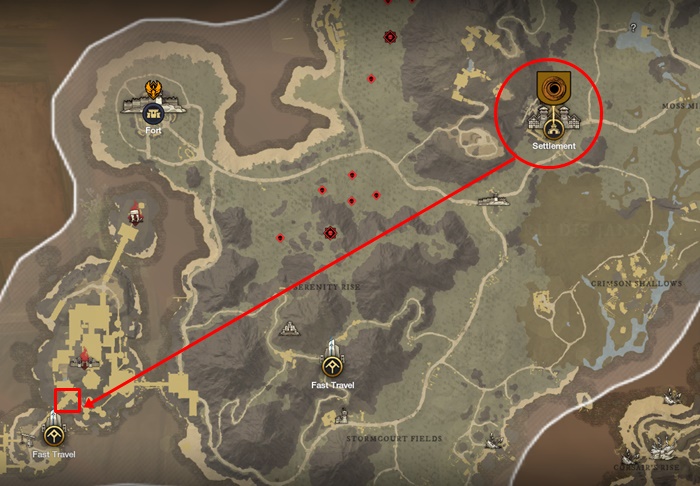 Brimstone haritasının merkezine ışınlanarak ulaşabilirsiniz. Aşağıda resimli olarak aktarılmıştır. Settlement ismi New Corsica Capital