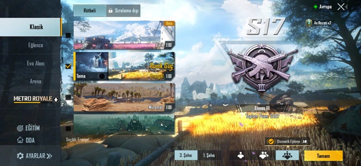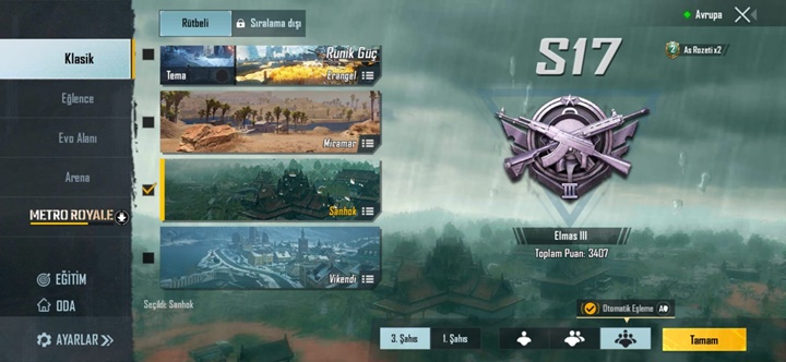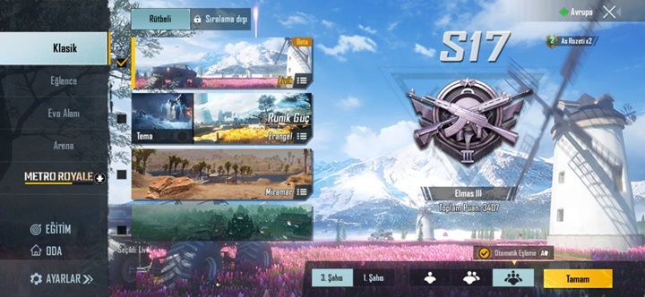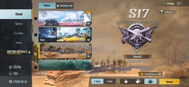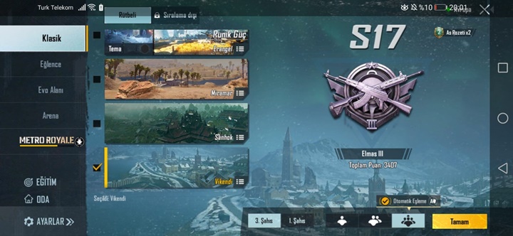 Oyunun sol alt kısmında başla butonunun hemen 2 seçenek üzerinde bulunan mod seçeneğine tıklayarak sol en üstteki klasik butonunu seçtiğimizde haritalara erişim sağlamış oluruz. Bu kısımdan oynamak istediğimiz harita kişi sayısı ve takım arkadaşlarını kapama yada açma seçeneklerini yaparak oyuna istediğimiz ayarlarda başlayabiliriz.